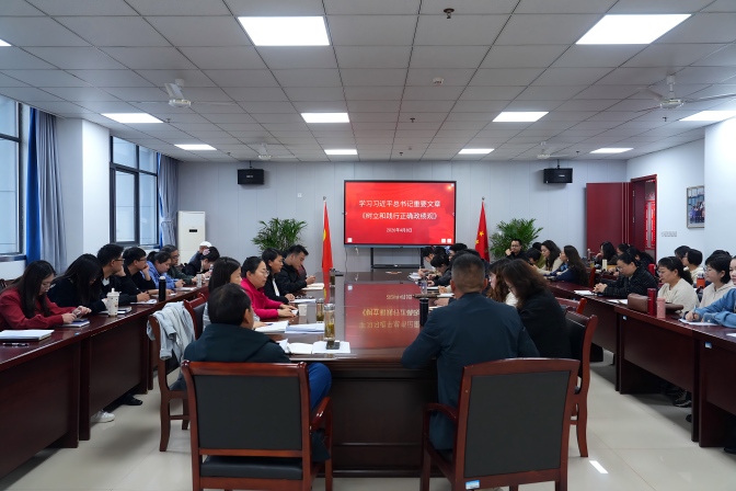 2026年4月8日下午,文学与教育学院举行全体教职工政治理论学习会。学院党委书记余建杰领学习近平总书记重要文章《树立和践行正确政绩观》和习近平总书记给四所交通大学全体师生的回信。本次学习旨在引导全体教职工深入学习习近平总书记最新重要讲话和重要指示批示精神,并转化为推动学院高质量发展的实际行动。