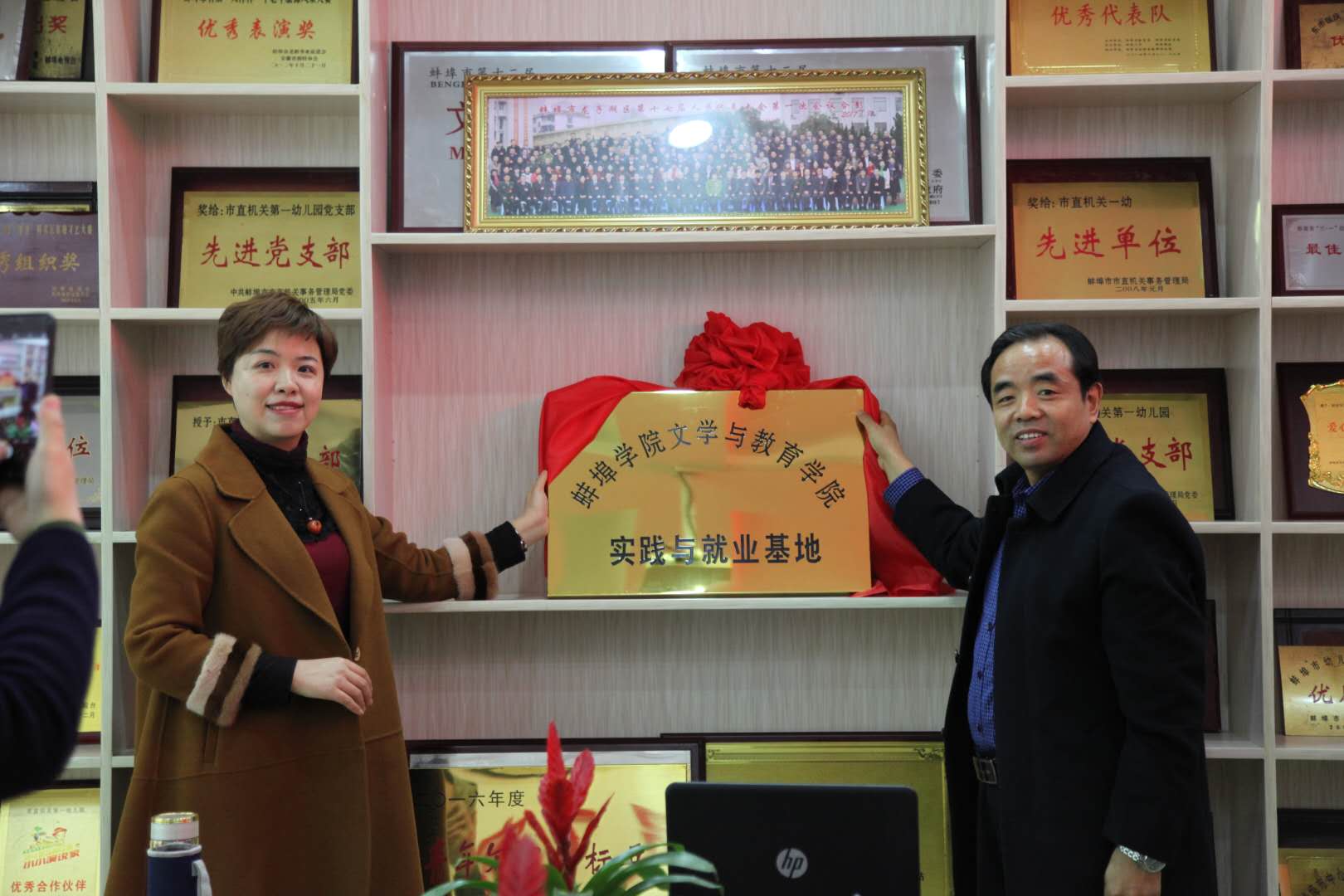 2018年3月16日,文学与教育学院学前教育专业实践与就业基地揭牌仪式在蚌埠市市直机关第一幼儿园举行。