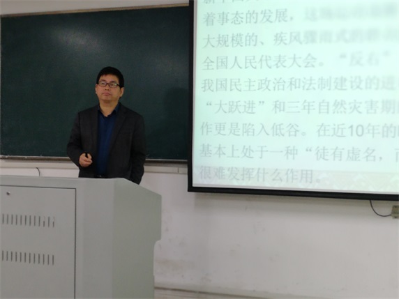 党课培训由党总支书记程志龙进行授课,主要内容围绕着“全国人民代表大会”展开,清晰准确地讲述了全国人民代表大会的历史沿革、工作和办事机构、职能以及相关的会议,内容详实。程书记还和同学们分享了自己对于宪法修正案的相关了解,提醒同学们一定要多多关注国家动态,心系国家。程书记因为多次为同学们讲课,一进教室就受到了的热烈欢迎,课堂上的气氛极其融洽。书记面向同学们,声音轻柔有力的说道:各位党员同志,你们要持续学习,给自己充满电,做到厚积薄发!要坚定信仰,保持饱满的精神面貌,起到好的模范作用,为文学与教育学院营建良好的学风建设贡献自己的力量。