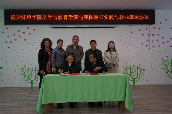 会上,双方签订实践与就业基地协议书并举行揭牌仪式。市直机关行政事务管理局副局长黄健、市直机关幼教集团董事长李华、市直机关第一实验幼儿园园长周洁、文学与教育学院院长吴长法分别介绍各自单位的历史沿革、办学规模、办学理念和教育教学活动。双方对基地的建立表示了充分的肯定,广泛讨论了实践教学的开展方式和学前教育人才的培养计划。