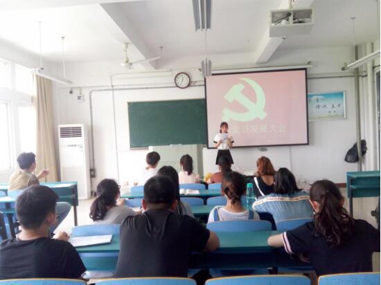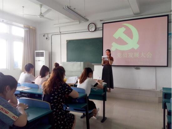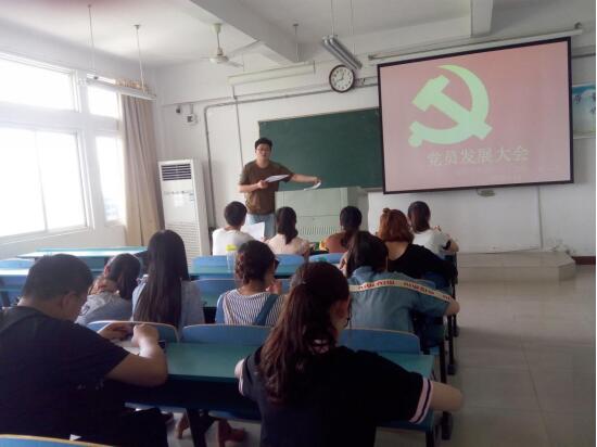 2018年5月15日,文学与教育学院学生第二党支部在教学楼B326召开了党员发展大会。大会的主要议题是吸收张瑜、王军伟、刘童童、胡广红四位同志为中共预备党员,会议由支部书记刘鑫老师主持,支部与会党员共30人。