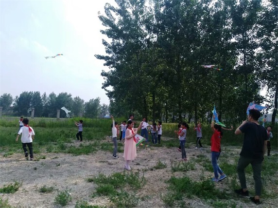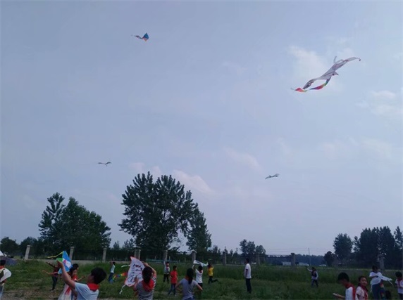 5月20日,志愿者们携着这些满含祝福的风筝来到曹老集第二小学,和可爱的孩子们一起,跟随春日暖风,将五彩斑斓的风筝们放飞向高远蓝天。田野里传来孩子们天真淳澈的笑声。他们的童年记忆里,将留有来自一群年轻支教老师们的关怀,将记得天真岁月里亲手放飞的希望。在夕阳的余晖中,志愿者们满心欢乐得踏上归程。大手拉小手的爱心纽带,暖意无穷。