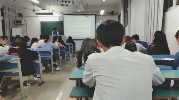 活动开始前同学们有序进场签到、入座,主持人介绍竞赛规则及竞赛的大致流程,分发答题纸,并宣布比赛正式开始。活动采用当堂测试的形式,重点考查同学们的基础地理知识,以及对我国防洪抗旱工作相关知识的了解与掌握程度。此次活动参加的人数众多,学生们热情高涨。当投影仪上出现题目后,同学们开始紧张激烈的答题,大家时而抬头记题,时而低头思索,有的同学思绪飞转,很快就在答题纸上写下答案,有的同学耐心思考力求答对所有题目……