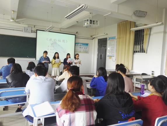 作为支部书记,潘兰香和刘鑫老师强调开展此次活动的意义,表达了对此次活动的美好期待。主持人赵百慧和郑成明同志的精彩开场白拉开了此次活动的序幕。文教院学生党支部的成员为本次活动精心准备了形式多样、丰富多彩的节目,有《强军战歌》《战士为国守安详》《没有共产党就没有新中国》《我爱你中国》等革命歌曲的演唱,有郭思琪同学制作的视频《送给祖国母亲》,有声情并茂的《祖国啊,我亲爱的祖国》《我的祖国》《不能不爱我的祖国》等经典诗歌诵读,有和“十月”、“祖国”等主题词密切相关的猜谜游戏活动等,党员们的朗诵感情饱满,歌声激情澎湃,成功的带动了现场的气氛。