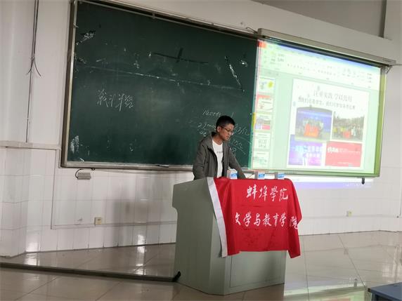 为深入学习贯彻习近平总书记“七二讲话”精神,更好推进团学工作,11月12至13日,蚌埠学院文学与教育学院团总支在教学楼阶梯教室二开展了为期两天的“以时代新人之名,挑起民族复兴重任”的主题宣讲。本次宣讲由文学与教育学院团总支书记毛星懿主持,文教学院学生骨干参加此次宣讲。