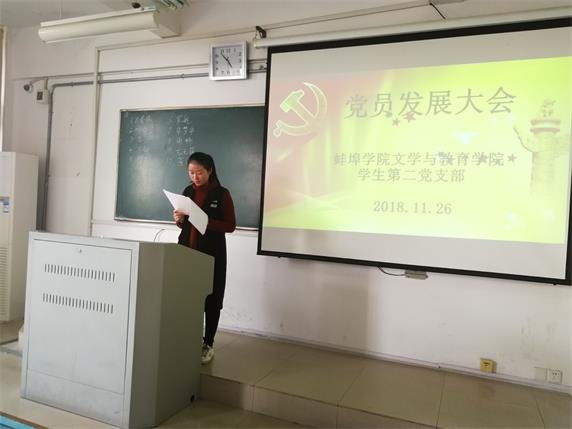 为进一步吸纳优秀学生壮大党员队伍,完善学生党员的队伍建设。11月26日中午12点30分,文学与教育学院学生第一、二、三党支部分别在教学楼召开党员发展大会,讨论审议吸收章雅倩、马春燕、李小静等30名发展对象为中共预备党员的事宜。大会由各支部书记主持,学生支部党员悉数参加。