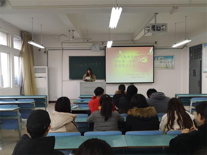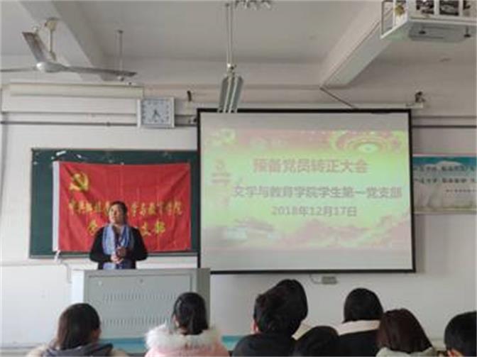 为进一步抓好党建工作,高质量完成学生党员发展工作,2018 年12月17日,文学与教育学院学生第一、二、三党支部于教学楼召开预备党员转正大会。会议认真讨论并审议了李琪等11名同志的转正申请。出席本次大会的有各学生党支部书记、支部委员和在校的学生党员。