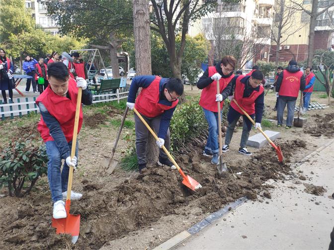 党员们准时到达了活动地点上铁世纪家园小区。胜利社区的启动仪式于早上九点准时开始,仪式上社区负责人发表讲话,号召青年朋友们争做雷锋精神的传承者、志愿服务活动的践行者,团聚青春力量,争当双创先锋,用实际行动引领社会风尚。启动仪式结束后,党员们进行了义务除草、义务植树、义务清理垃圾等多项义务活动。郑成明同志作为老党员带领预备党员一起积极劳动,以身作则,拿起铁锹率先进行除草植树活动,起到了良好的先锋模范作用,同时为支部积蓄后备力量,促进支部更好更快的发展。支部男同志卖力种树,女同志则拿起水桶为新树浇水、清除树周围的杂草,在义务劳动的同时,支部党员互帮互助体现了良好的团结协作能力,提高了支部凝聚力。
