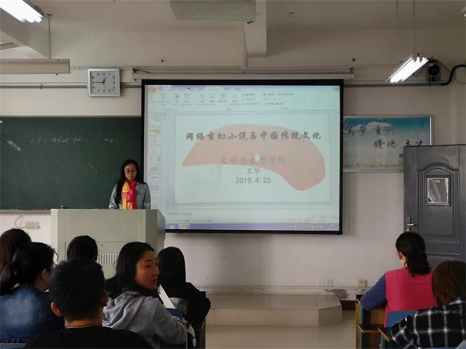 2019年4月25日上午,文学与教育学院王华老师在教学楼C201教室举办名为《网络玄幻小说与中国传统文化》的学术讲座。本次讲座属于蚌埠学院“涂山学术讲坛”系列。