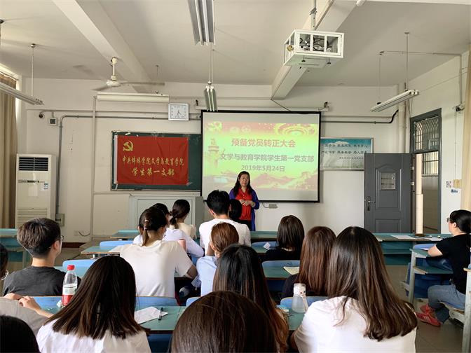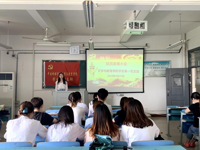 为进一步壮大党员队伍,加强学生党员队伍建设,同时为党支部不断注入新鲜血液,2019年5月24日中午13:00,文学与教育学院学生第一党支部在教学楼B324召开党员发展大会和预备党员转正大会,讨论审议吸收苗润智等6名发展对象为中共预备党员以及讨论审议刘少华等7名同志的转正申请事宜。本次大会由党支部书记潘兰香老师主持,学生支部党员悉数参加。
