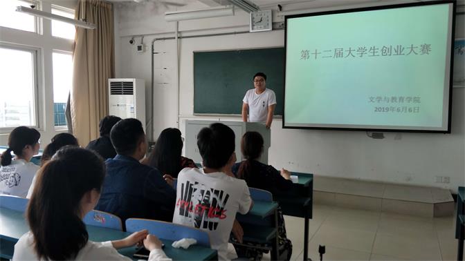 为深入学习贯彻落实习近平新时代中国特色社会主义思想和党的十九大精神,深入推动大众创业、万众创新,全面实施高校毕业生就业创业促进计划,提高大学生的实践能力和综合素质,着力培养大学生的社会责任感和创新精神,更好地服务现代化五大发展美好安徽建设,文学与教育学院于2019年6月6日在教学楼B315举行了第十二届大学生职业规划设计大赛暨大学生创业大赛选拔赛,田万慧、潘兰香、刘鑫教师担任大赛评委。