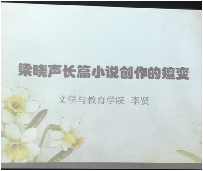讲座伊始,李贤介绍了自己与作家梁晓声及其作品的学术研究背景。紧接着分别从“作品题材、人物形象塑造、情感内蕴”三个方面对梁晓声不同时期的创作变化进行具体阐述。并以长篇作品《浮城》等为例,指出了作家始终坚持用现实主义的基本创作手法塑造了一系列个性鲜明的人物形象及作家从悲愤到冷静、从激情到温情的创作情感变化。最后李贤以梁晓声获得“第十届茅盾文学奖”为契机,呼吁在场学生关注“茅盾文学奖”获奖作家及其作品,养成多阅读,多思考的学习习惯。