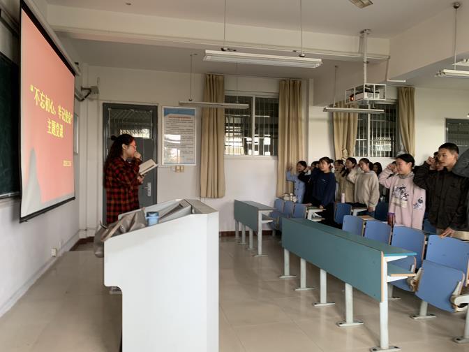 为贯彻落实习近平新时代中国特色社会主义思想,落实校党委“不忘初心、牢记使命”的主题教育要求,进一步坚定党员理想信念,增强凝聚力,2019年11月6日,文学与教育学院学生第一党支部书记毛星懿在教学楼B320为全体学生党员讲授“不忘初心、牢记使命”主题教育党课。