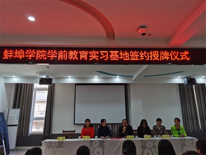 11月11日,蚌埠学院文学与教育学院学前教育专业实践与就业基地揭牌仪式在龙湖幼儿园教育集团泷湖湾幼儿园举行,双方签订了实践与就业基地协议书并举行揭牌仪式.