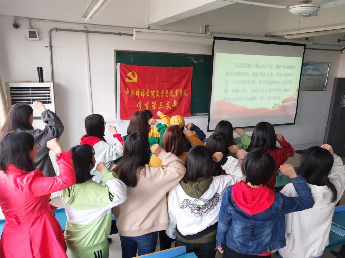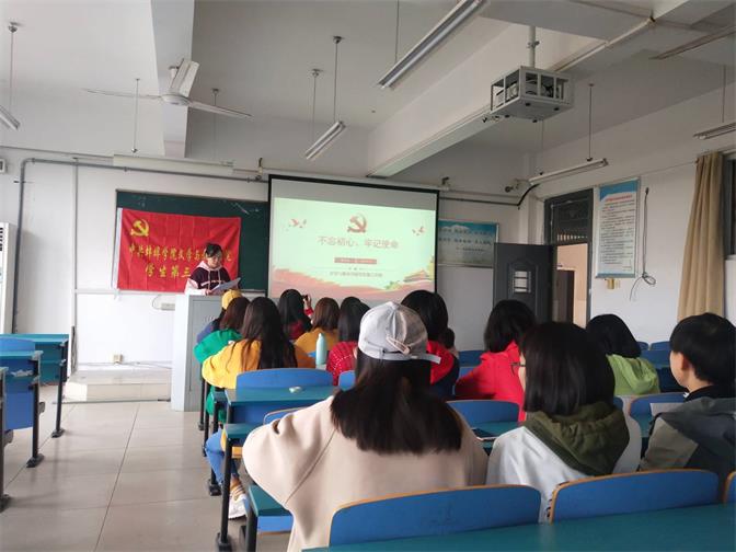 为深入贯彻落实学院“不忘初心、牢记使命”主题教育实施方案,11月6日,文学与教育学院学生第三党支部于教学楼b314开展了支部书记上党课活动。支部书记黄宇琛围绕“不忘初心、牢记使命”这一主题,开展主题党课教育。