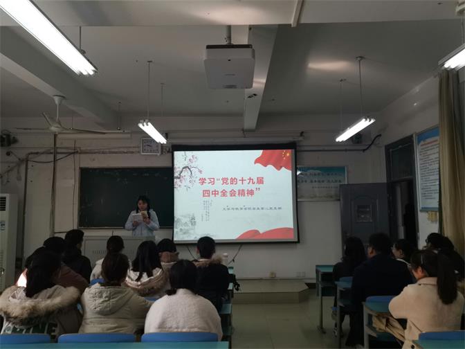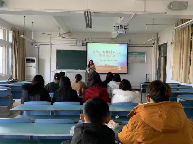 为深入学习贯彻党的十九届四中全会精神,扎实推进“不忘初心,牢记使命”主题教育,11月29日,文学与教育学院学生第一、第二、第三党支部分别开展党的十九届四中全会精神专题学习会,本次专题学习会由各学生党支部书记主持,支部全体党员参与学习。