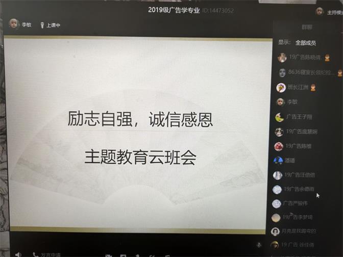 盛夏五月,为加强学生思想道德教育,提高学生们的诚信意识,文学与教育学院召开了“励志自强、诚信感恩”主题“云班会”活动。