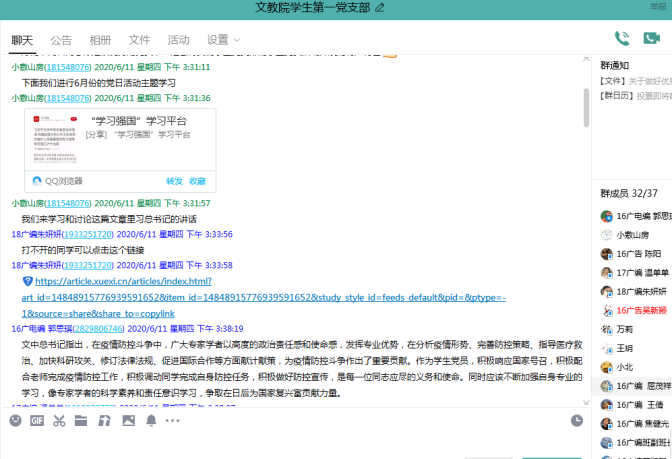 “人民安全是国家安全的基石,只有构建起强大的公共卫生体系,才能切实为维护人民健康提供有力保障。”6月2日习近平总书记在专家学者座谈会上的讲话发人深思。为了深刻学习体会总书记讲话精神,6月11日,学生第一党支部书记毛星懿带领大家开展了“学习习近平总书记讲话精神”的主题党日活动,支部全体成员热烈讨论,积极交流。