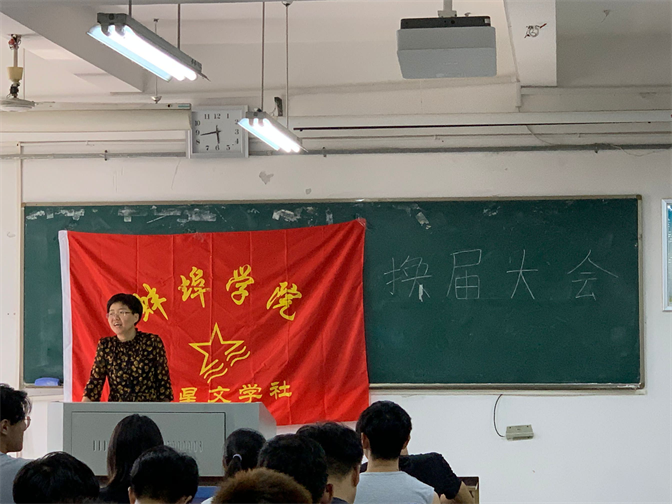 会上,上一届会长总结了过去一年的工作,随后,洪老师发表讲话,她强调了文学社的宗旨,用真诚有趣的话语肯定了社团的工作,并提出了新一年的展望。随后会长团候选人依次发言,发表他们对社团的理解以及社团发展的建议,整个会议严肃不乏温情,满载回忆亦承载希望。