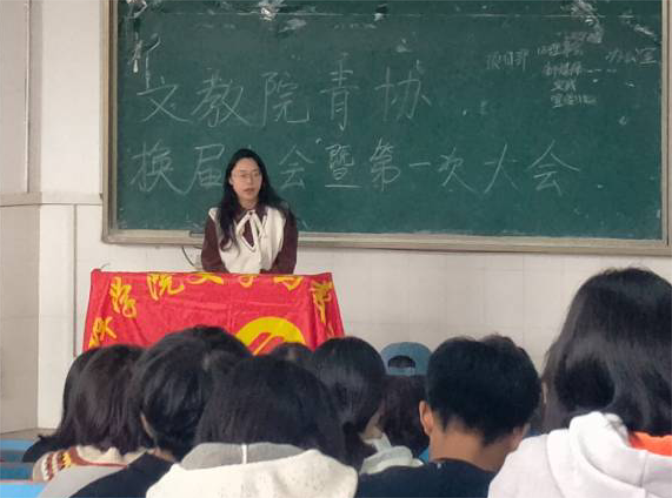 新起点,新气象,为促进协会的新发展,增强新生的归属感与责任感,文学与教育学院青年志愿者协会于10月29日中午12:30在阶梯教室一举行协会换届大会暨第一次例会,文学与教育学院团总支书记毛星懿主持并指导会议,全体成员参会。