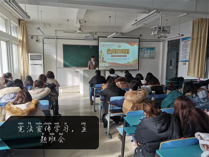 2020年12月4日是第七个国家宪法日,为加强宪法知识宣传,提高大学生的法治精神,文学与教育学院各班级于2020年12月1日—6日在“宪法宣传周”分别召开了“深入学习宣传习近平法治思想,大力弘扬宪法精神”主题班会。班会由班级导师和辅导员组织,班委代表上台进行了相关知识的宣传。