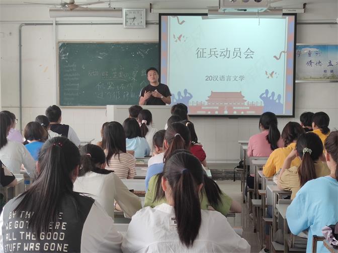 为积极响应国家“参军入伍”工作,做好2021年度征兵工作,提高大学生对征兵工作及相关政策的理解,文学与教育学院各班级于2021年5月在教学楼陆续开展“参军入伍”动员会。