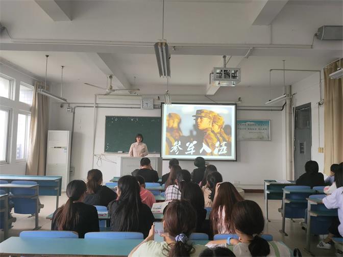 各班级辅导员结合大学生参军入伍宣传手册以及征兵公益宣传片,向同学们详细介绍了大学生参军入伍的征集对象、政治要求、基本身体条件、大学生优惠政策及学费资助等基本常识和政策,使同学们对大学生参军入伍有了一定的了解。部分班级请到了我校2016年入伍的王东冬同学,他向同学们讲述了自己的参军历程,并分享了自己入伍两年的收获。王东冬同学讲到:“以本科生身份入伍,体验了热血沸腾的军旅生活之后回到学校继续学习,于2018年7月光荣入党,收获颇多。”这段经历的分享让同学们感受到了军营的热血,纷纷发言,踊跃提问。王东冬同学告诉学弟学妹们:“一段路,从何处来已知,向何处去各种可能。选择时慎之又慎,选好了便要义无反顾,心无旁骛。”之后,辅导员又给大家介绍了大学生参军入伍的优惠政策,包括参军经济优待、服役期间的优待政策以及退役后优抚待遇等,最后对同学们发出积极参军入伍的呼吁。