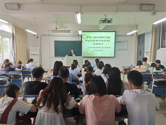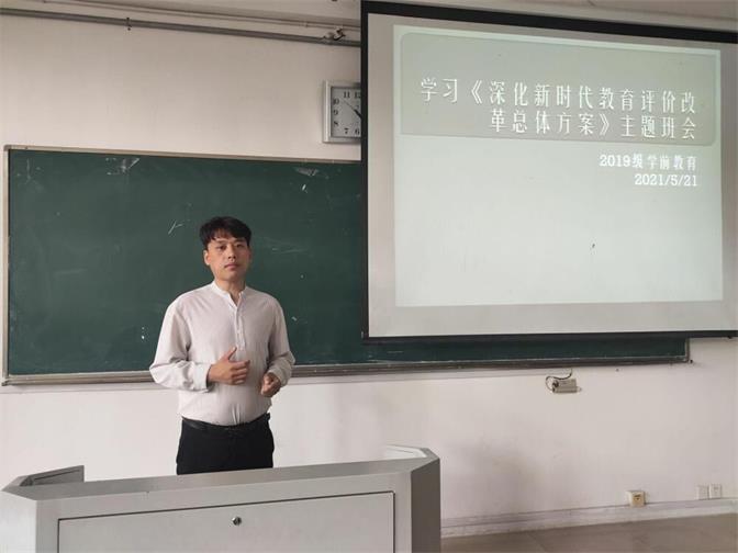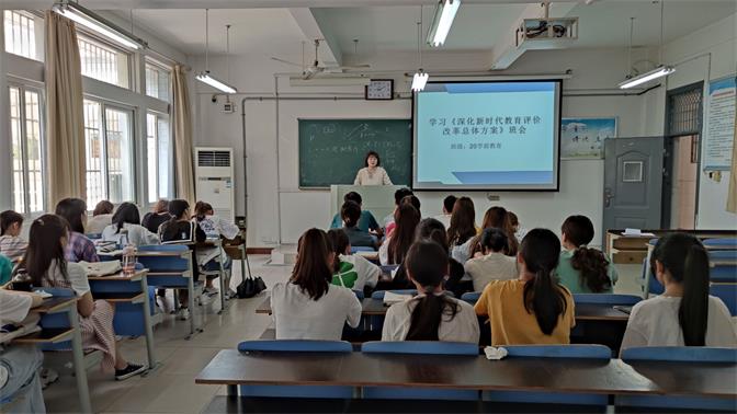 为深入学习习近平总书记关于抓好《深化新时代教育评价改革总体方案》,根据《蚌埠学院贯彻落实<深化新时代教育评价改革总体方案>工作方案》通知要求,文学与教育学院高度重视《总体方案》的学习和贯彻作用,于5月份通过主题班会形式,组织全体学生进行学习,确保将《总体方案》精神传达至每一位学生,真正让学生成为学校教育评价改革的参与者。