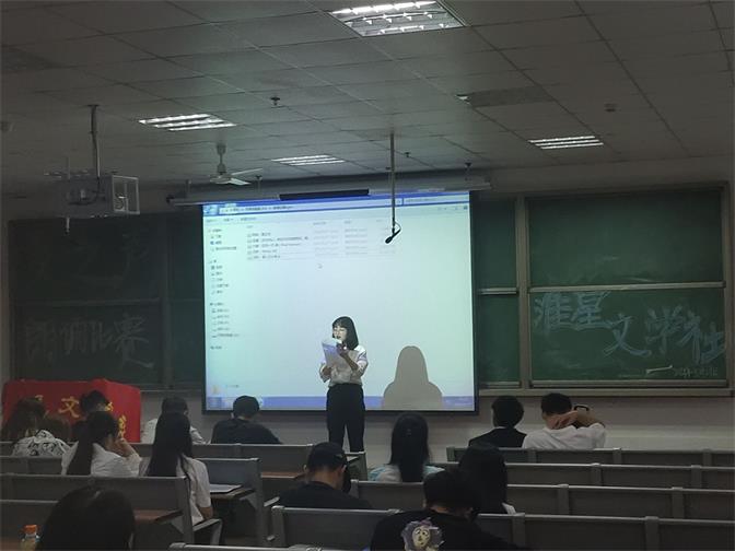 为进一步活跃社团文化气氛,丰富会员的课余文化生活,为广大文学爱好者提供一个展现自我的舞台。5月27日晚七点,淮星文学社在G205举办了第二届淮星杯“夏之声”原创朗诵比赛。