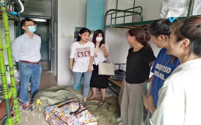 为深入了解学生开学报到情况,落实疫情防控常态化下学生宿舍管理工作,8月29日下午,文学与教育学院党总支副书记夏春晓和辅导员一行走进学生宿舍,了解学生返校和生活情况。